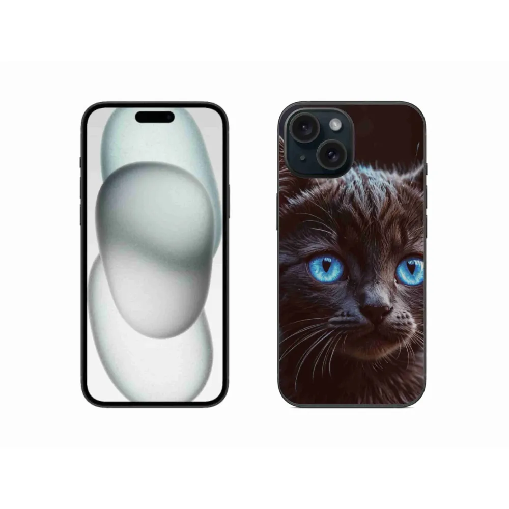 Rugalmas zselés tok mmCase képpel iPhone 15 készülékhez - fekete cica 2