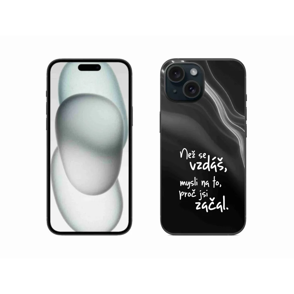 Rugalmas zselés tok mmCase képpel iPhone 15 - idézet 2 fekete háttérhez