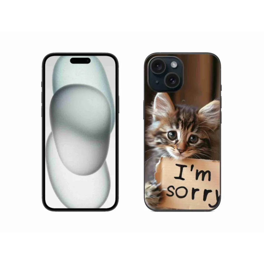 Rugalmas zselés tok mmCase képpel iPhone 15 készülékhez - macska bocsánatkérés