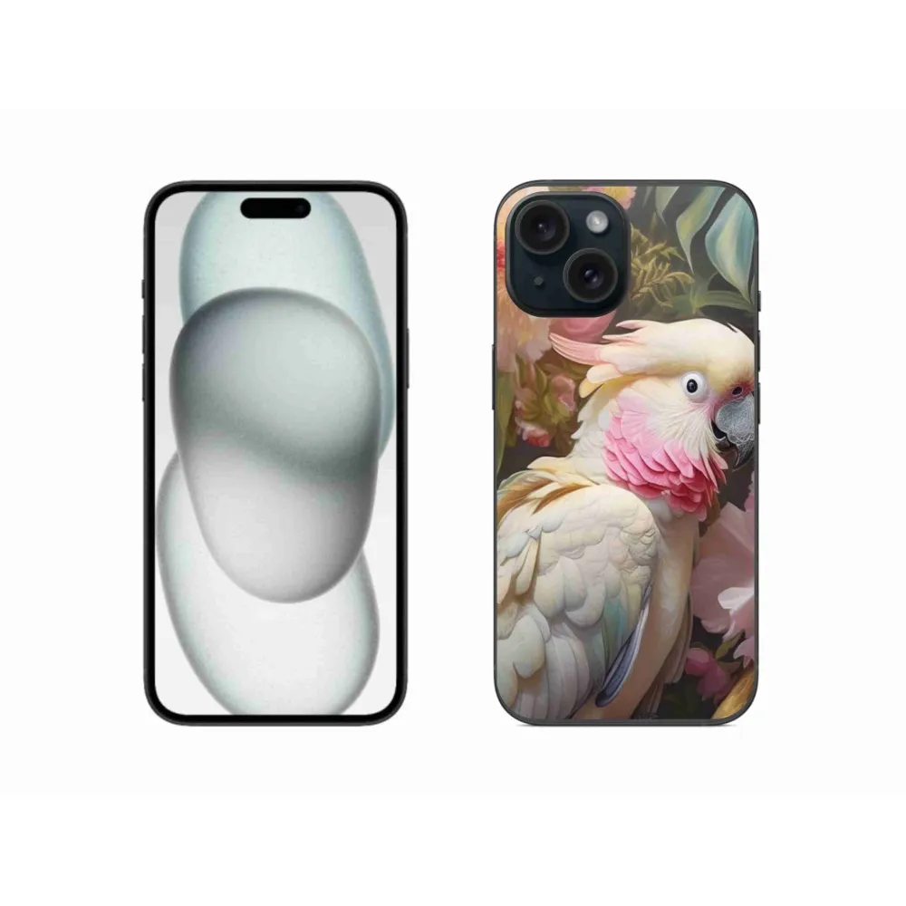 Rugalmas zselés tok mmCase képpel iPhone 15 készülékhez - papagáj kakadu rózsaszín 2