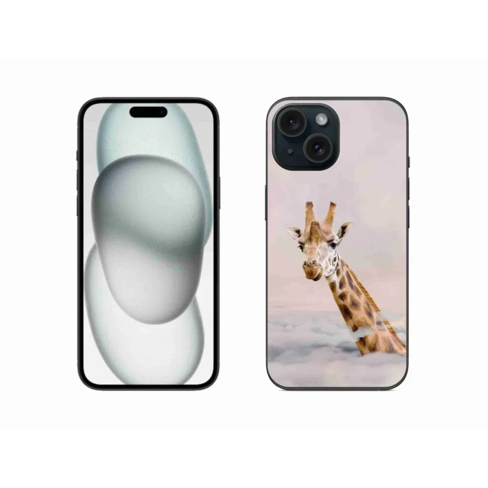Rugalmas zselés tok mmCase képpel iPhone 15 készülékhez - zsiráf a felhők között