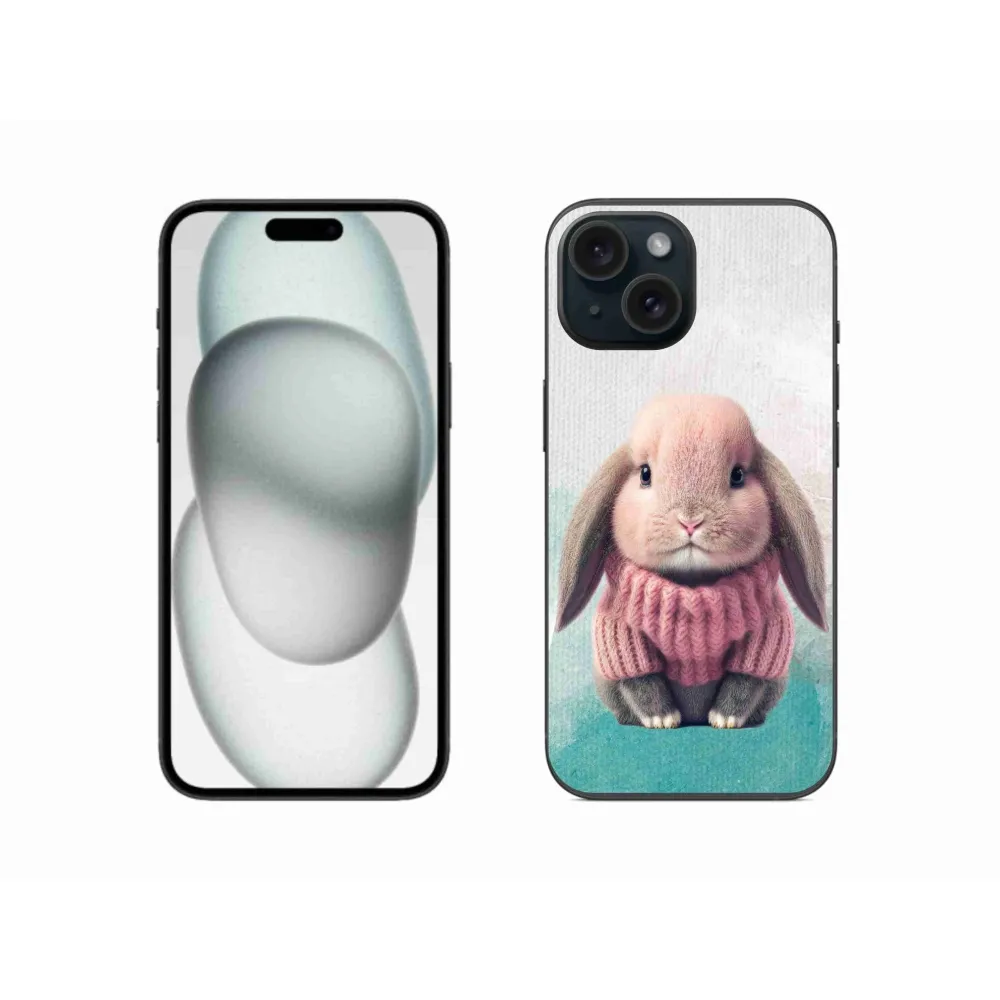 Rugalmas zselés tok mmCase képpel iPhone 15-hez - nyúl pulóverben