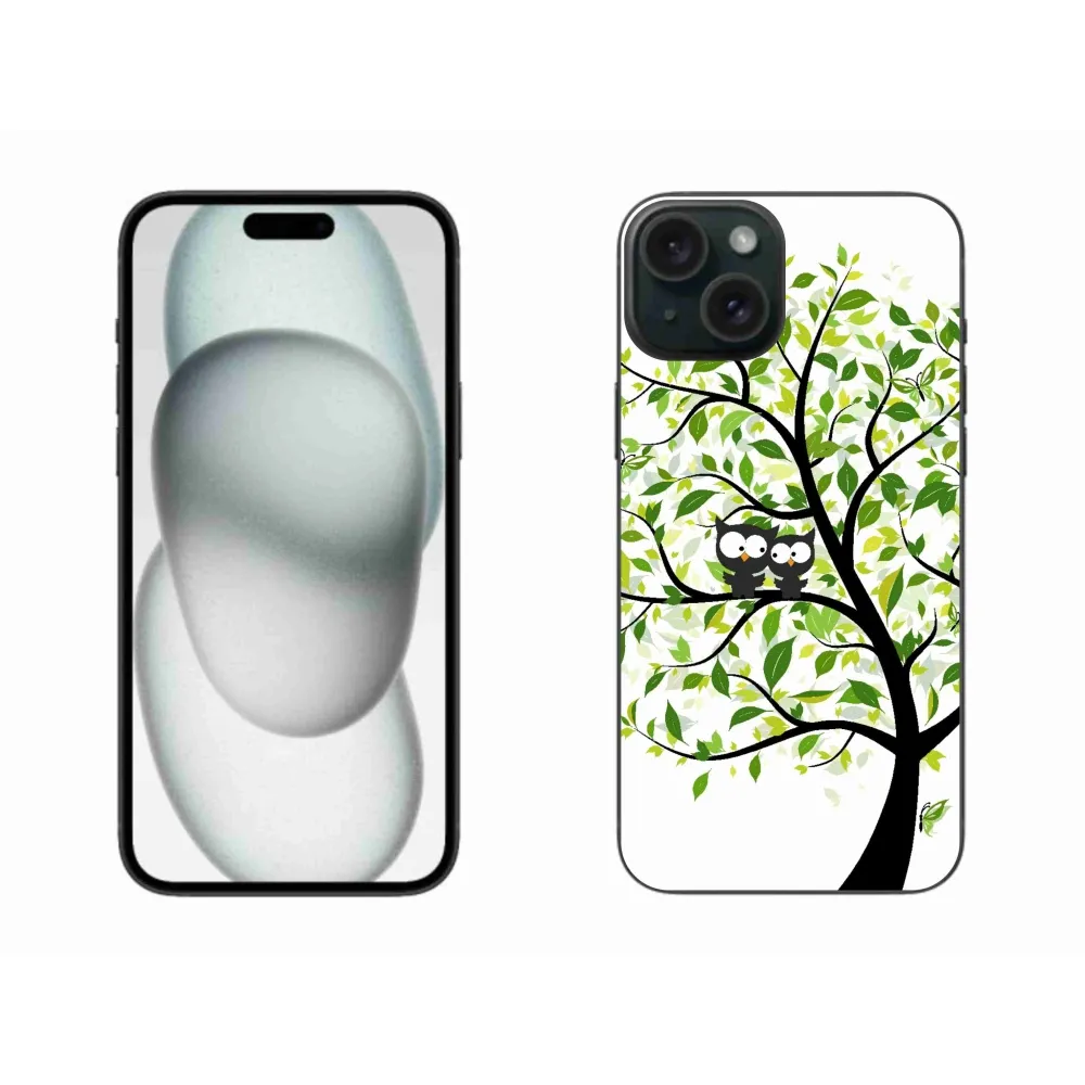 Rugalmas zselés borítás mmCase tok motívummal iPhone 15 Plus készülékhez - baglyok a fán