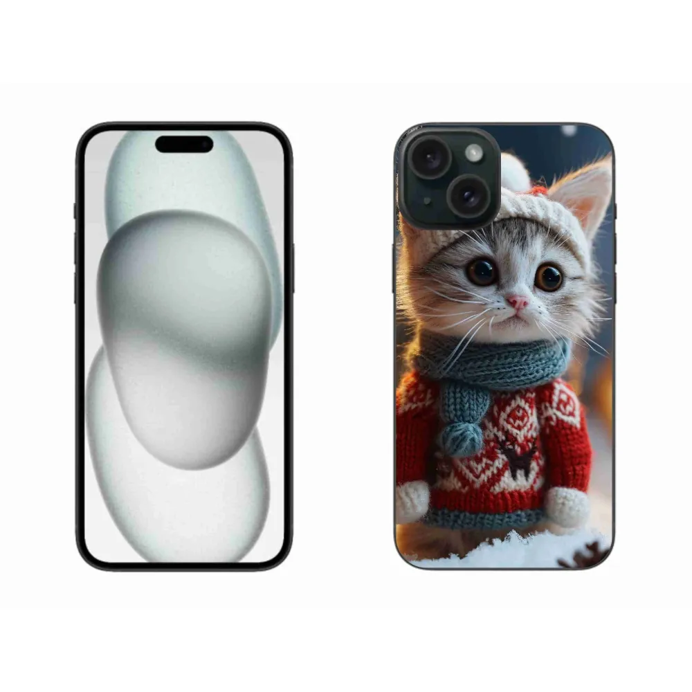 Rugalmas zselés tok mmCase képpel iPhone 15 Plus készülékhez - cica pulóverben