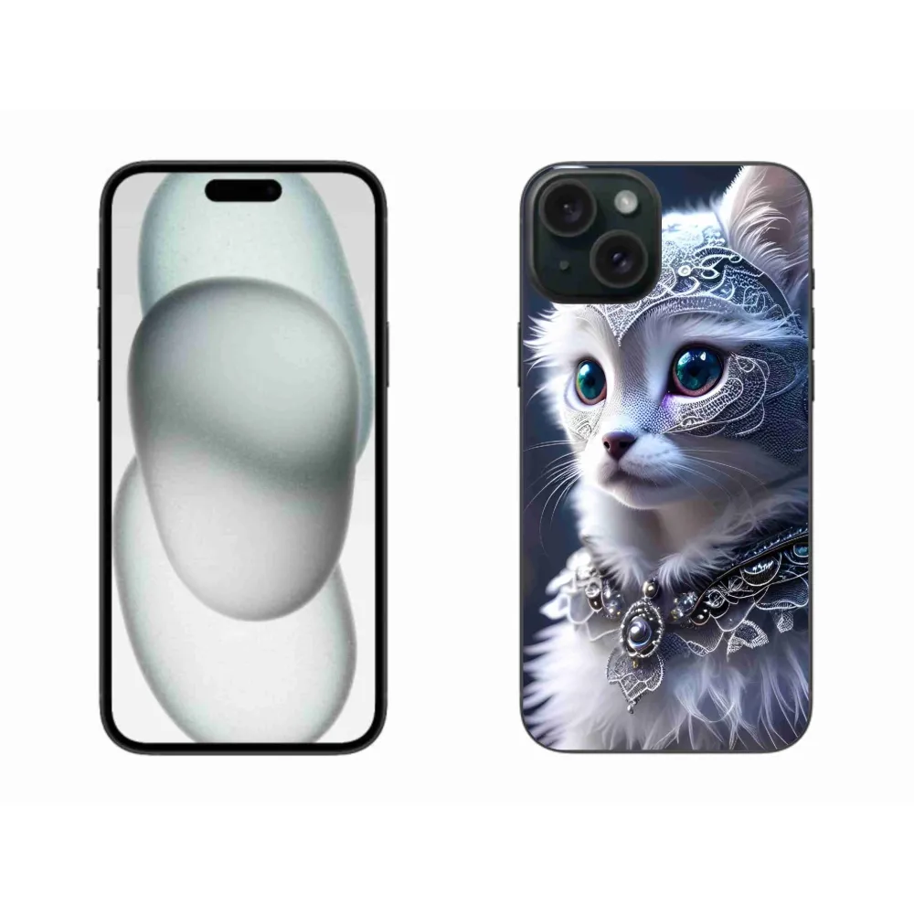 Rugalmas gél tok mmCase képpel iPhone 15 Plus készülékhez - fehér macska