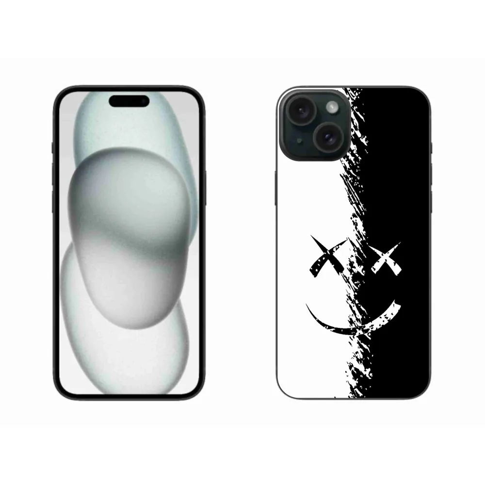 Rugalmas zselés tok mmCase képpel iPhone 15 Plus készülékhez - fekete-fehér mosolygós képekkel