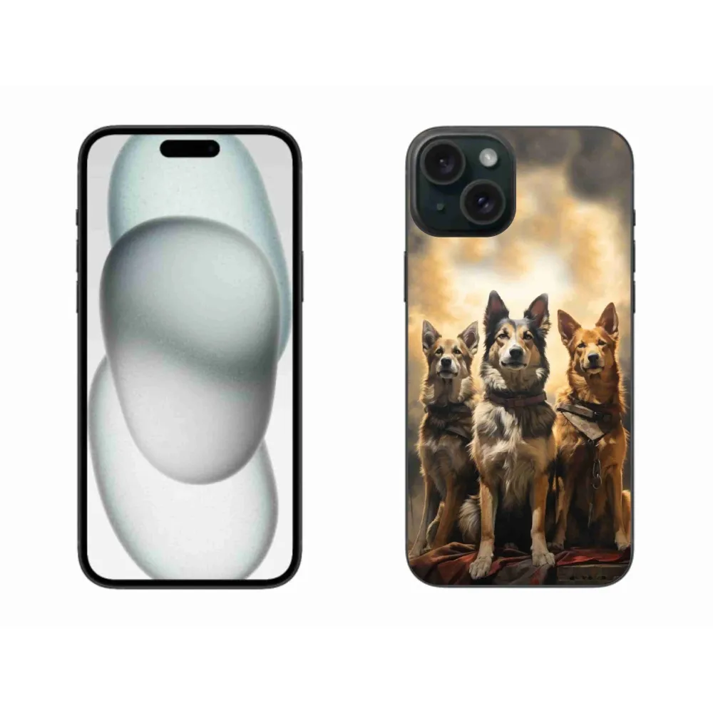 Rugalmas zselés tok mmCase képpel iPhone 15 Plus készülékhez - három kutya