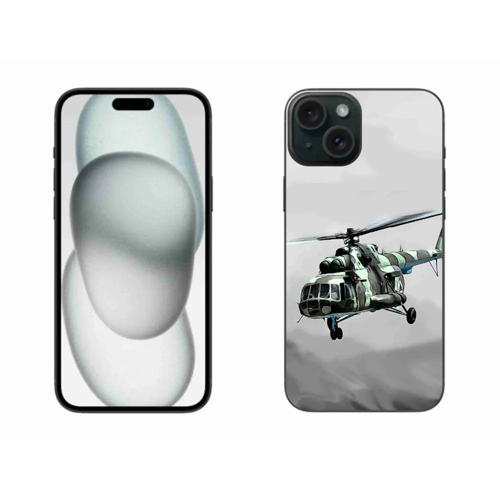Rugalmas zselés tok mmCase képpel iPhone 15 Plus készülékhez - katonai helikopter