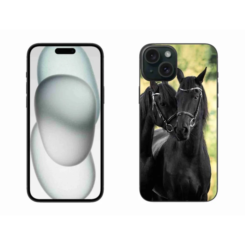 Zselés borítás mmCase iPhone 15 Plus készülékhez - két fekete ló