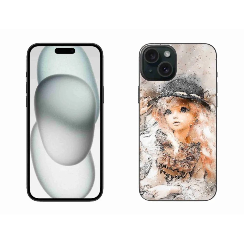 Rugalmas zselés borítás mmCase s motivem iPhone 15 Plus készülékhez - lány sapkával