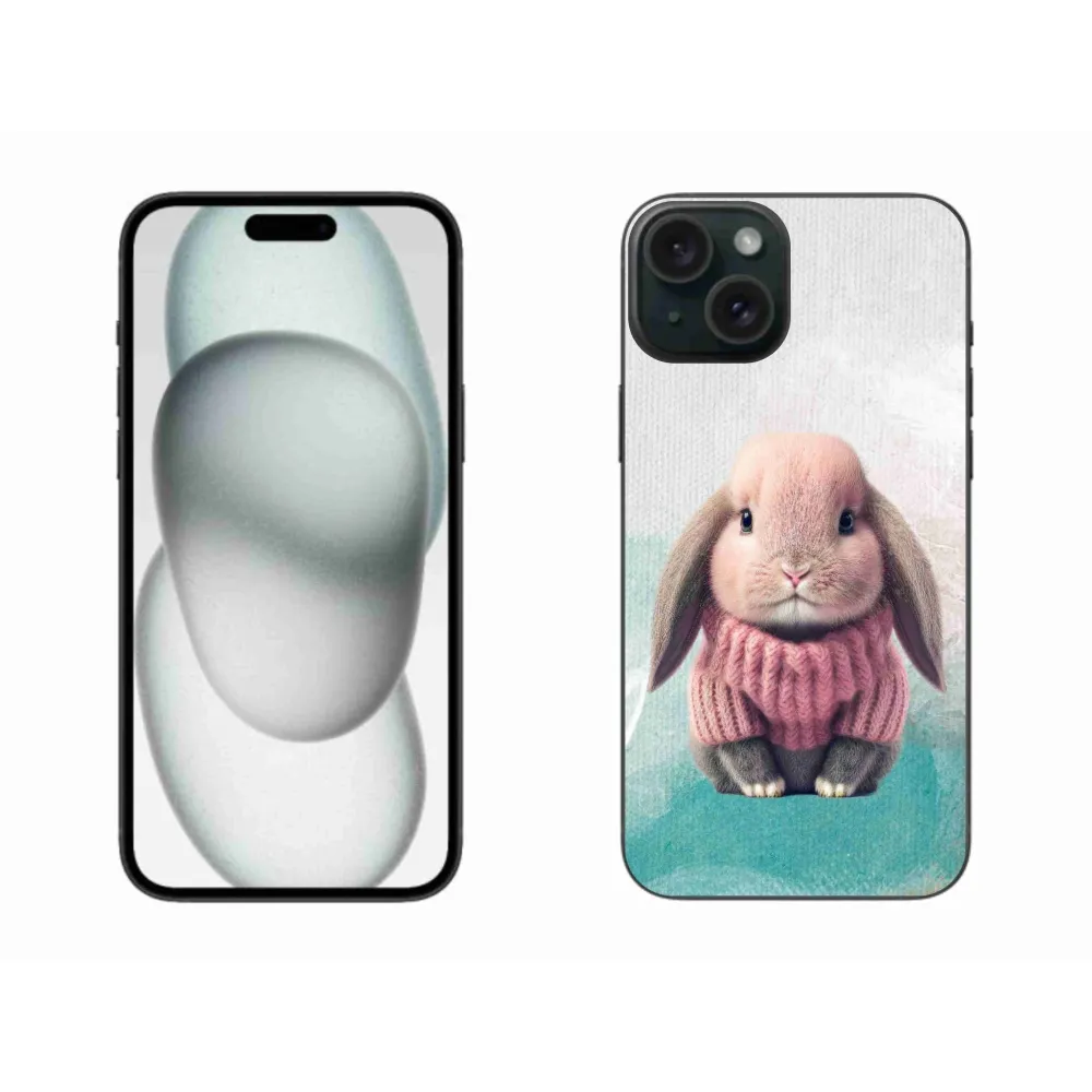 Rugalmas zselés tok mmCase képpel iPhone 15 Plus készülékhez - nyúl pulóverben