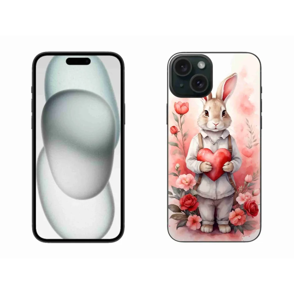 Rugalmas zselés tok mmCase képpel iPhone 15 Plus készülékhez - nyúl szívvel
