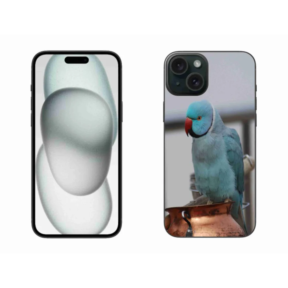 Rugalmas zselés tok mmCase képpel iPhone 15 Plus készülékhez - papagáj alexander kék