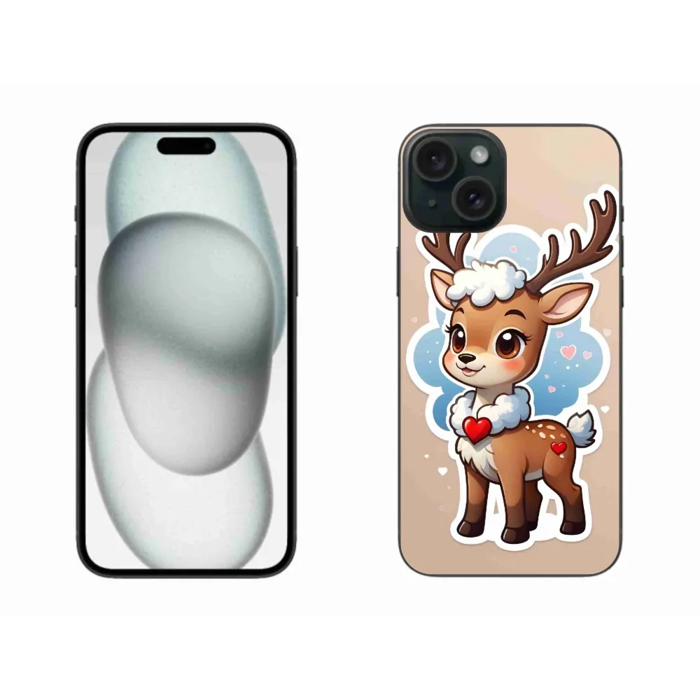 Rugalmas zselés tok mmCase képpel iPhone 15 Plus készülékhez - rajzfilm rénszarvas