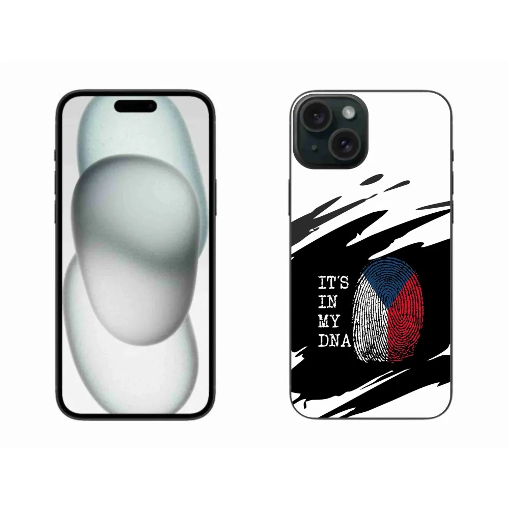 Rugalmas gél tok mmCase kép iPhone 15 Plus - zászlós ujjlenyomat fekete és fehér háttérrel