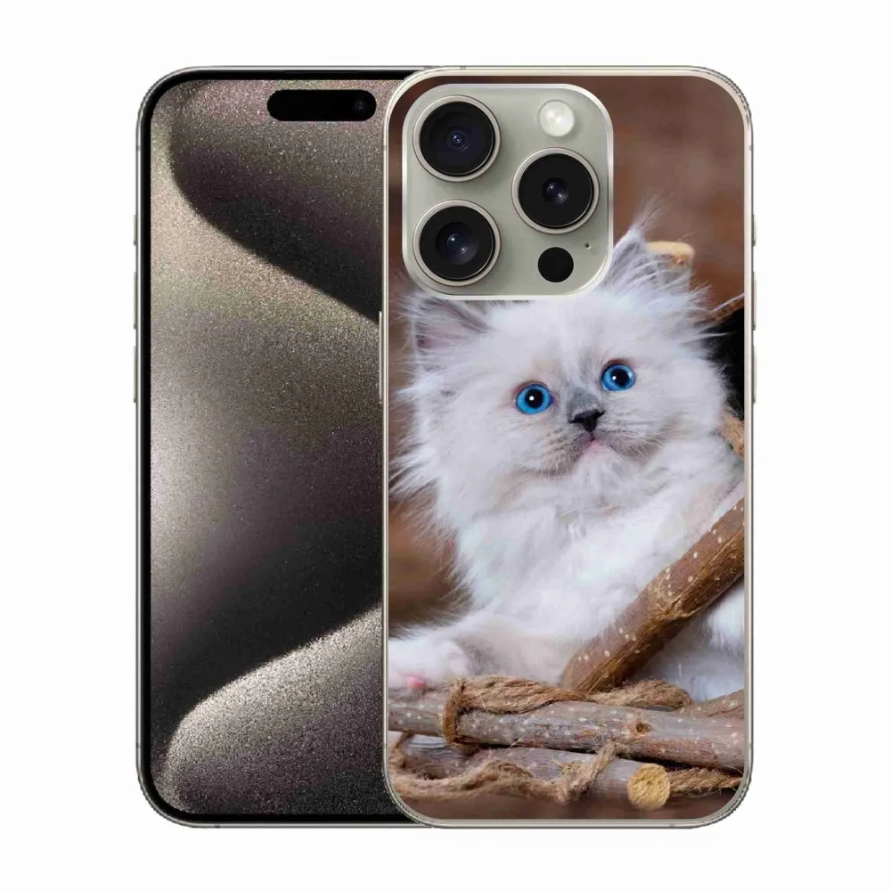 Rugalmas zselés tok mmCase képpel iPhone 15 Pro készülékhez - fehér cica