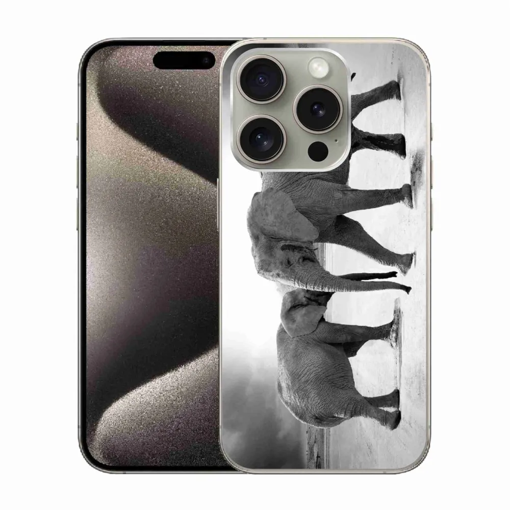 Rugalmas zselés tok mmCase képpel iPhone 15 Pro készülékhez - fekete és fehér elefántok