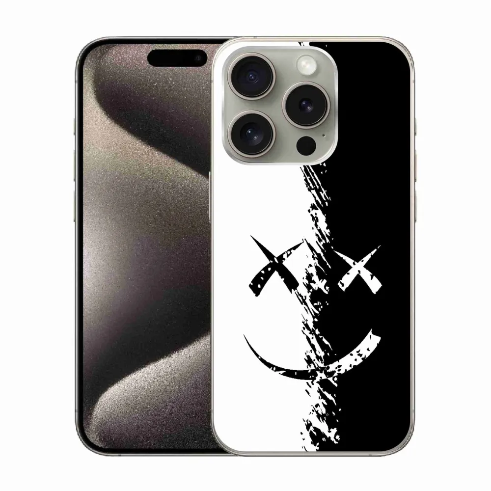 Zselés borítás mmCase iPhone 15 Pro készülékhez - fekete-fehér mosolygó