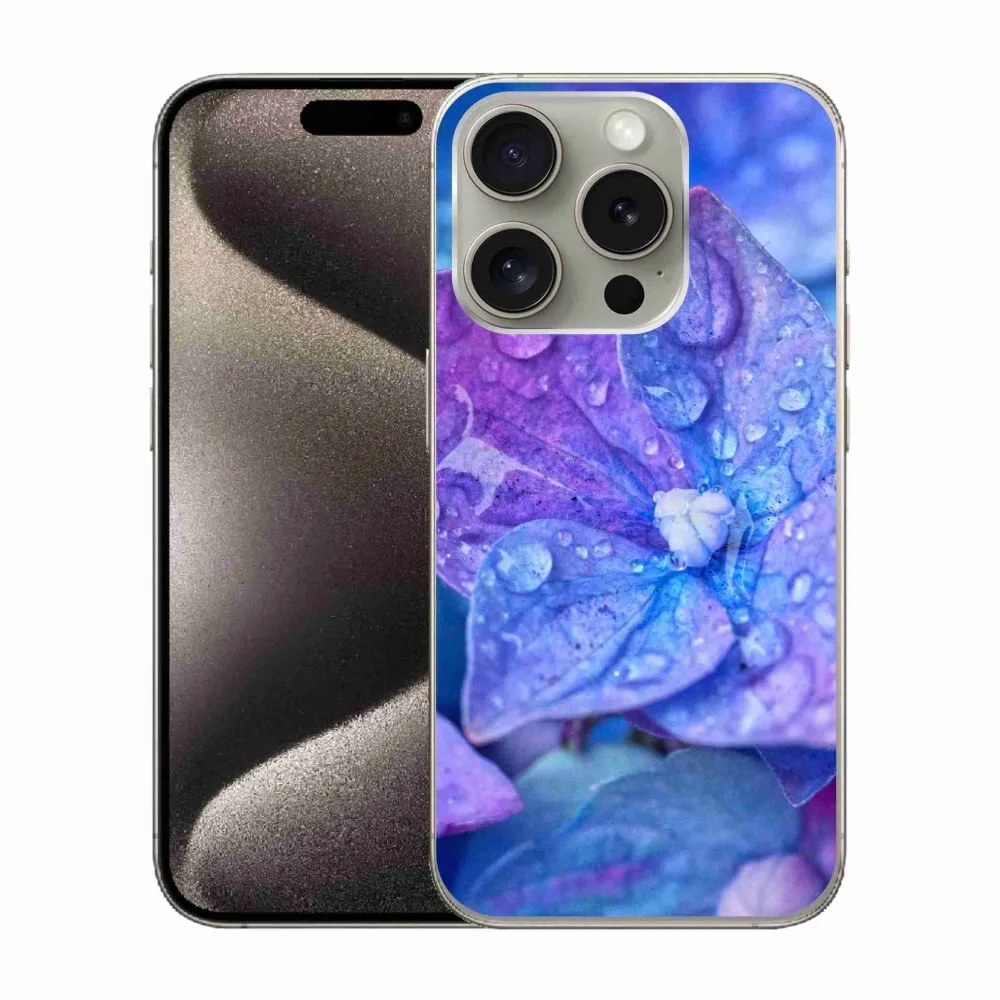 Rugalmas zselés tok mmCase képpel iPhone 15 Pro készülékhez - lila virág