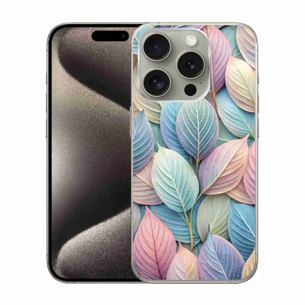 Zselés borítás mmCase iPhone 15 Pro készülékhez - pasztell levelek