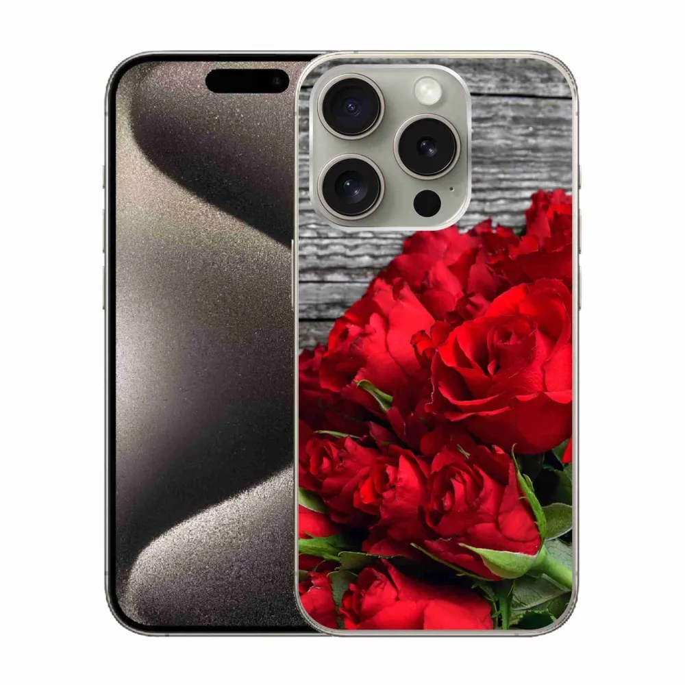 Rugalmas zselés tok mmCase képpel iPhone 15 Pro készülékhez - piros rózsa