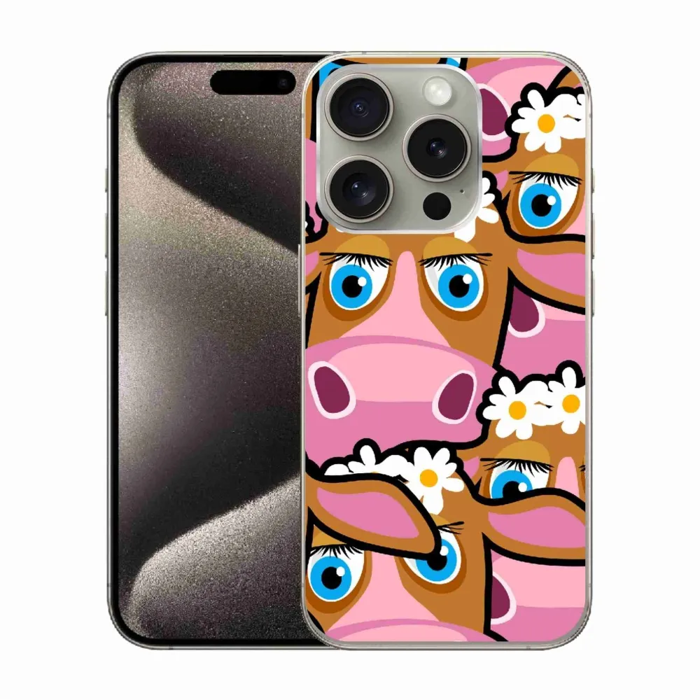 Rugalmas zselés tok mmCase képpel iPhone 15 Pro készülékhez - rajzfilmtehenek