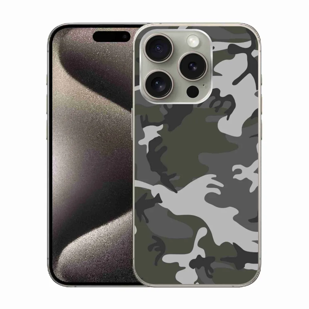Rugalmas zselés tok mmCase képpel iPhone 15 Pro készülékhez - álcázó minta