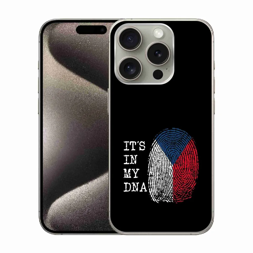 Rugalmas zselés tok mmCase kép iPhone 15 Pro - zászlós ujjlenyomat fekete háttérrel