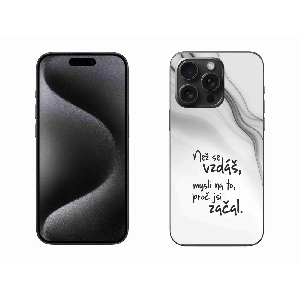 Rugalmas zselés tok mmCase képpel iPhone 15 Pro Max - idézet 2 fehér háttérrel