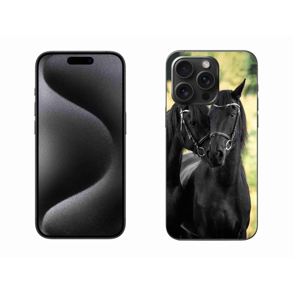 Zselés borítás mmCase iPhone 15 Pro Max készülékhez - két fekete ló