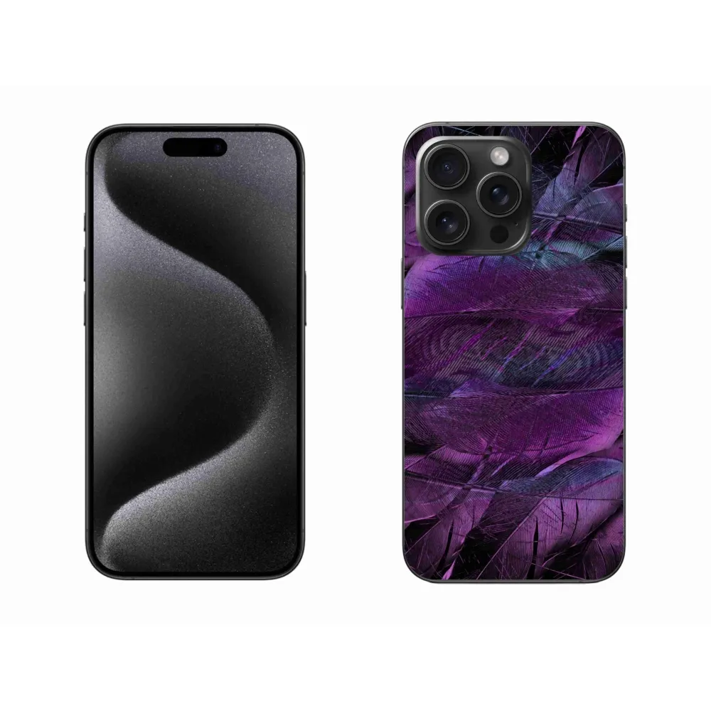Rugalmas zselés borítás mmCase motívummal iPhone 15 Pro Max készülékhez - lila tollakkal