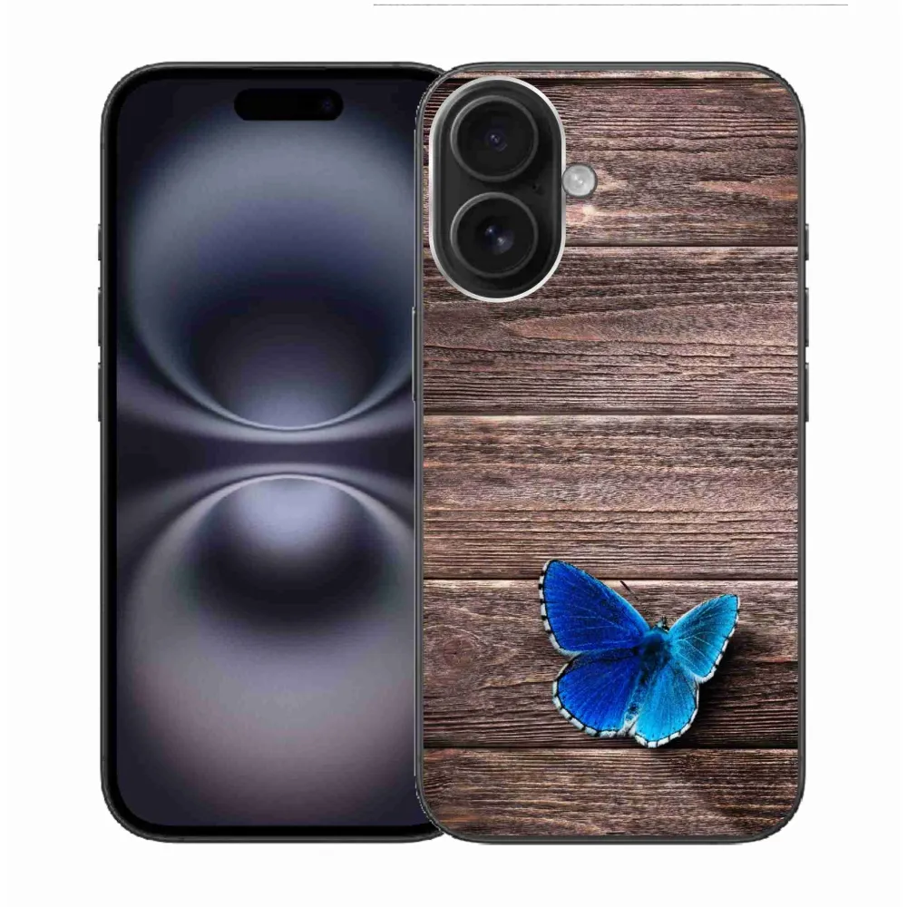 Rugalmas zselés tok mmCase képpel iPhone 16-hoz - kék pillangó 1