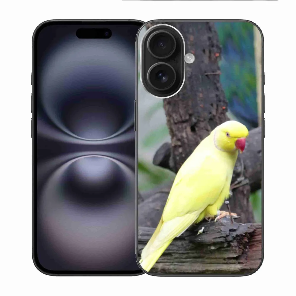 Rugalmas zselés tok mmCase képpel iPhone 16-hoz - papagáj alexander sárga
