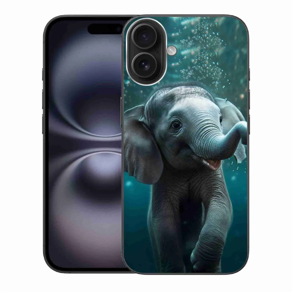 Rugalmas zselés tok mmCase képpel iPhone 16 Plus készülékhez - elefánt a víz alatt