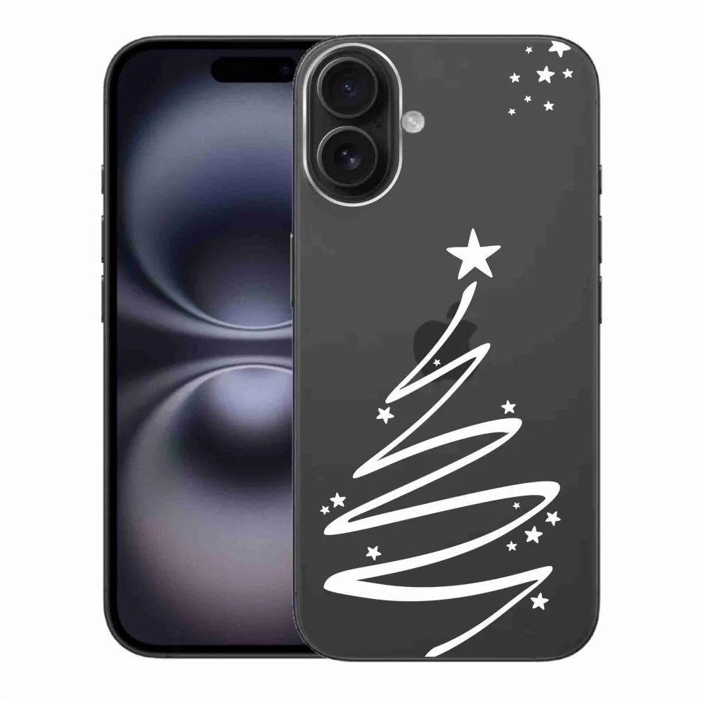 Rugalmas zselés tok mmCase képpel iPhone 16 Plus készülékhez - fehér fa átlátszó háttéren