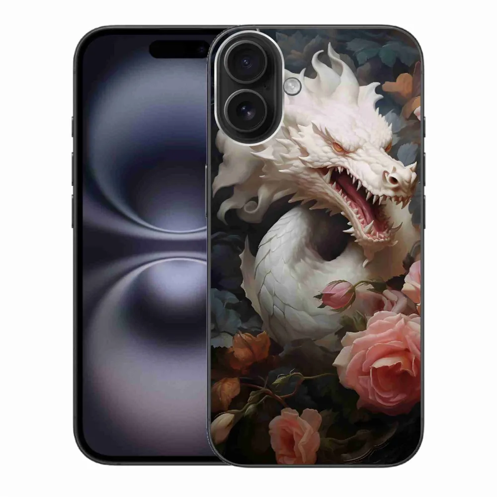 Rugalmas zselés tok mmCase képpel iPhone 16 Plus készülékhez - fehér sárkány
