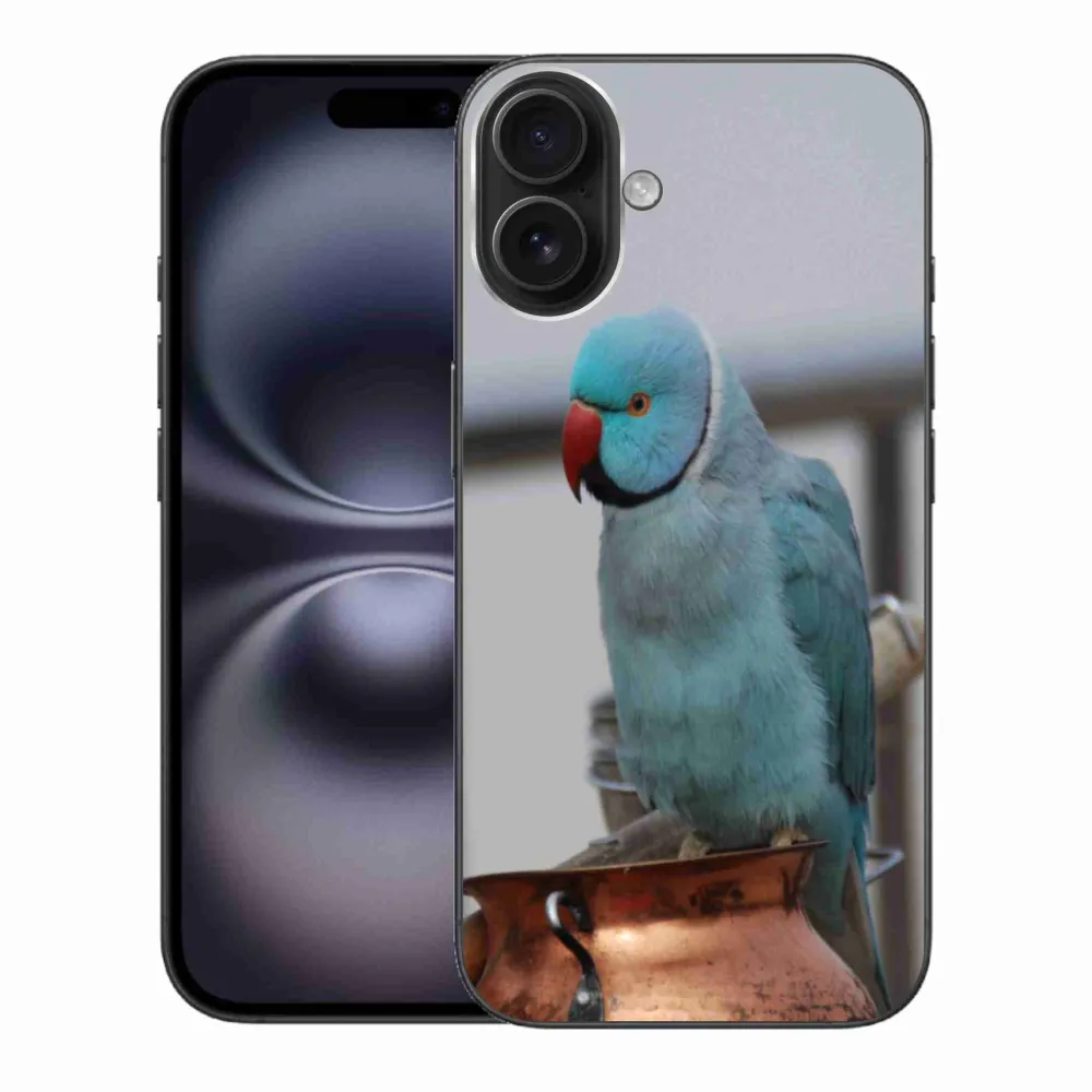 Rugalmas zselés tok mmCase képpel iPhone 16 Plus készülékhez - papagáj alexander kék