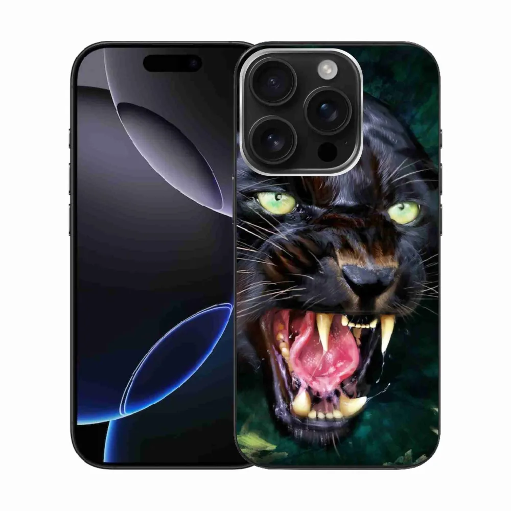 Zselés borítás mmCase iPhone 16 Pro készülékhez - dühös fekete párduc
