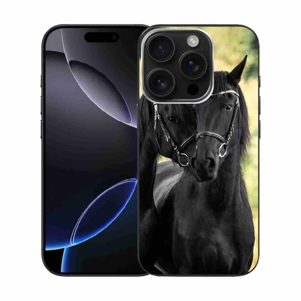 Zselés borítás mmCase iPhone 16 Pro készülékhez - két fekete ló