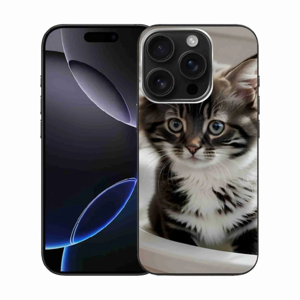 Rugalmas zselés tok mmCase képpel iPhone 16 Pro készülékhez - kíváncsi cica