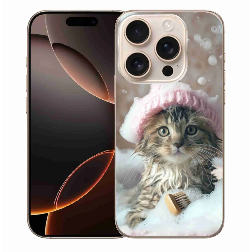 Rugalmas zselés tok mmCase képpel iPhone 16 Pro Max készülékhez - cica és fürdés