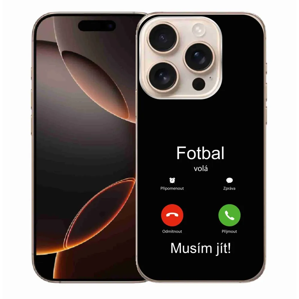 Rugalmas zselés tok mmCase képpel iPhone 16 Pro Max - futballhívások fekete háttérrel