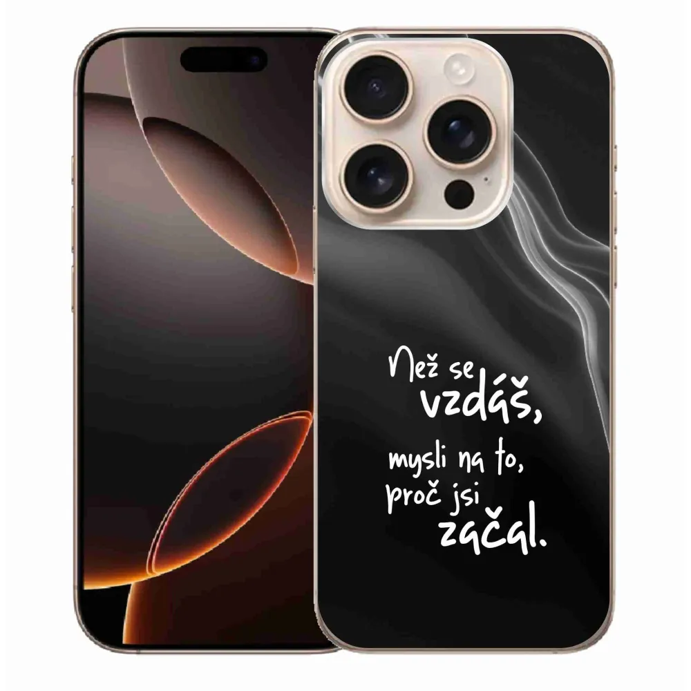 Rugalmas zselés tok mmCase képpel iPhone 16 Pro Max készülékhez - idézet 2 fekete háttérrel