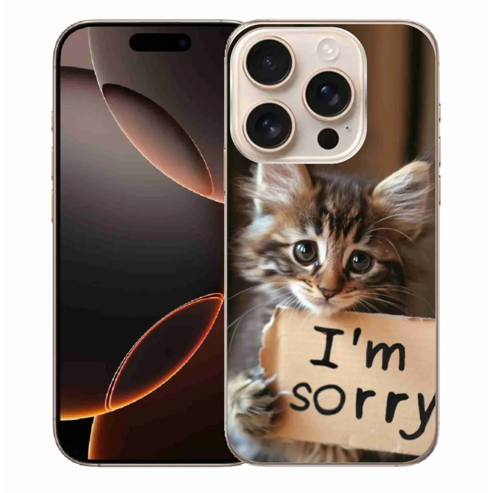 Rugalmas zselés tok mmCase képpel iPhone 16 Pro Max készülékhez - macska bocsánatkérés