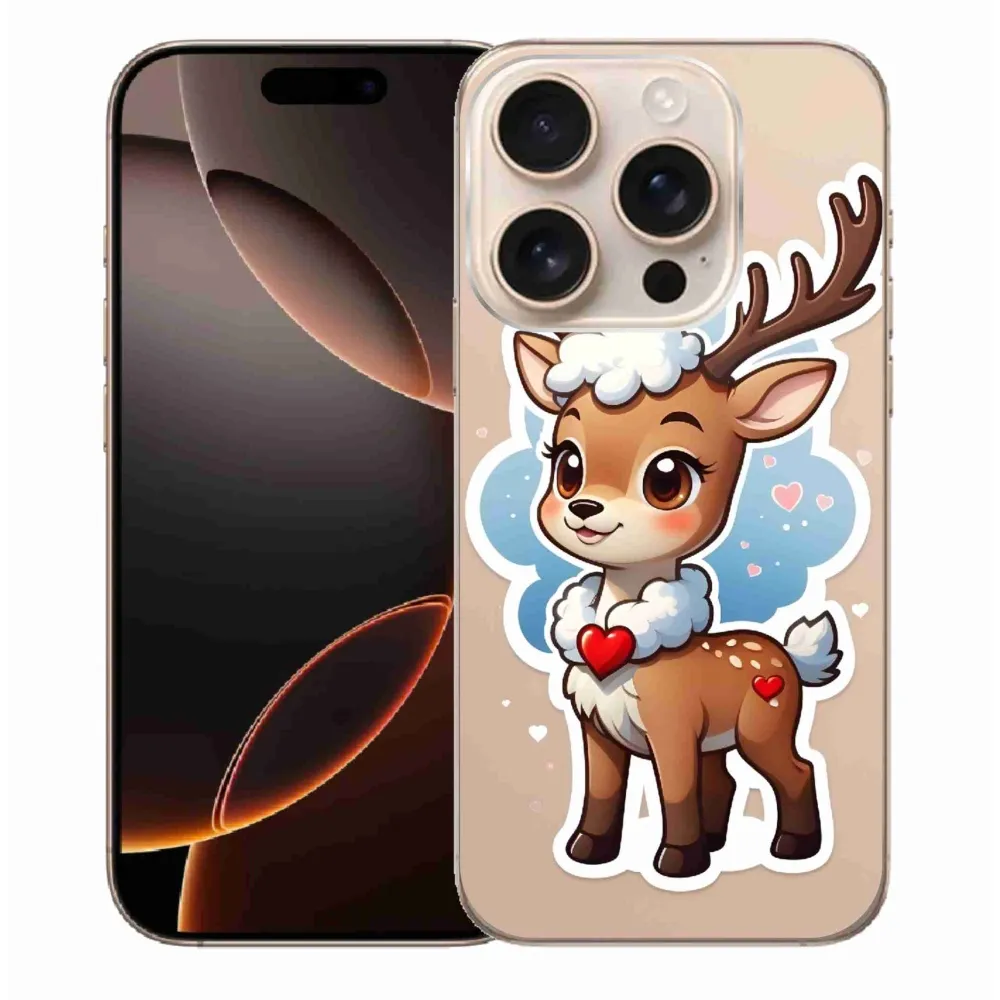Rugalmas zselés tok mmCase képpel iPhone 16 Pro Max készülékhez - rajzfilm rénszarvas
