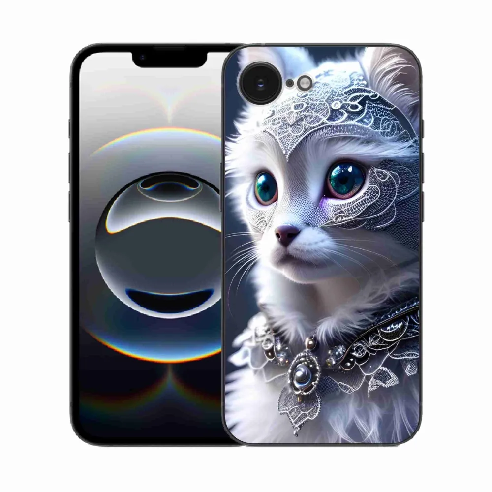 Rugalmas zselés tok mmCase képpel iPhone 16e készülékhez - fehér macska