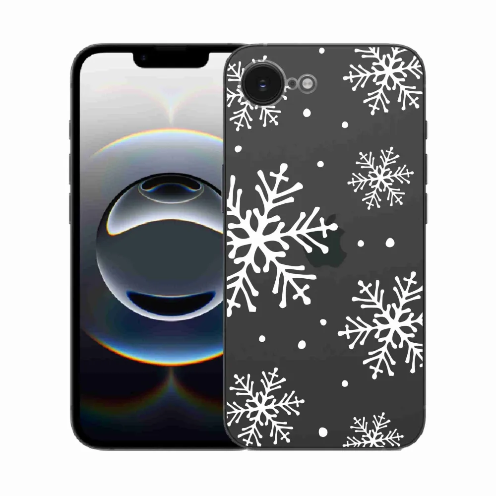 Zselés borítás mmCase iPhone 16e készülékhez - fehér pelyhek átlátszó háttéren