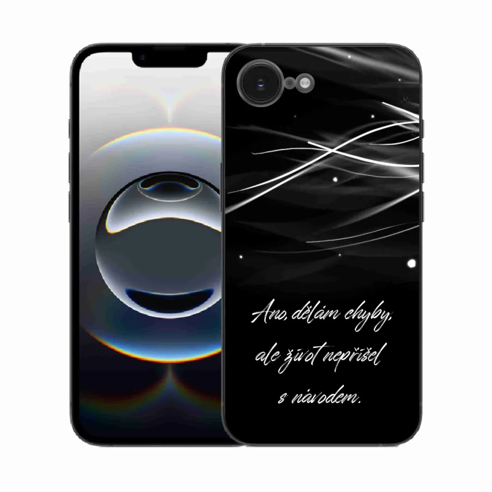 Rugalmas zselés tok mmCase képpel iPhone 16e készülékhez - idézet fekete háttérrel