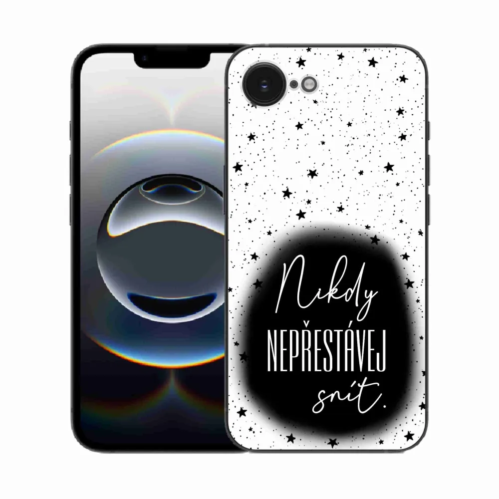 Rugalmas zselés tok mmCase képpel iPhone 16e készülékhez - idézet 1 fekete és fehér háttérrel