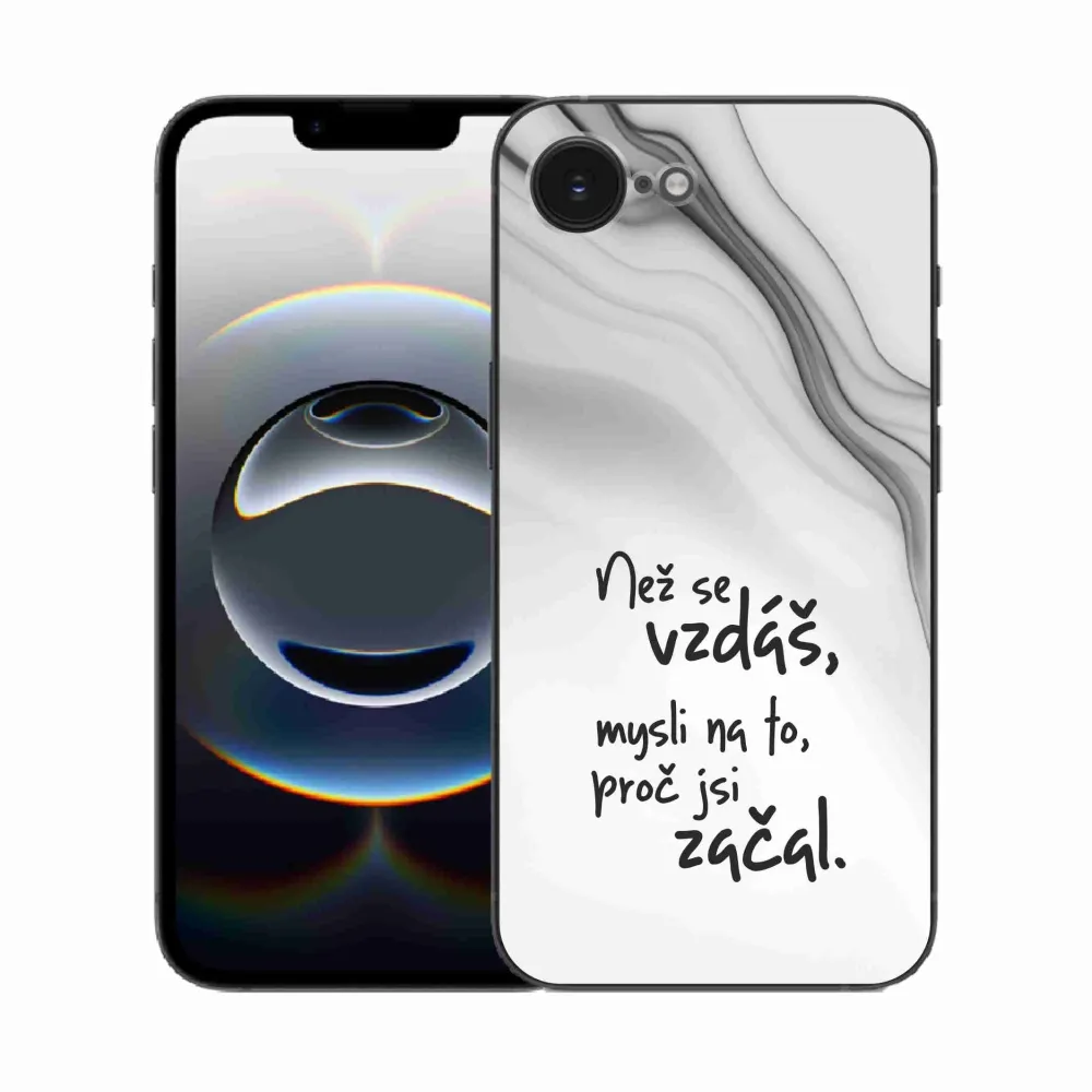 Rugalmas zselés tok mmCase képpel iPhone 16e - idézet 2 fehér háttérrel